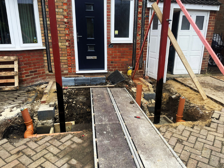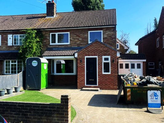 This project in Camberley focused on improving accessibility and enhancing the home’s entrance. We built a new front porch with a practical downstairs toilet, carefully designed to provide easier disability access. To complete the transformation, we constructed a front lean-to roof, giving the property a smart and welcoming appearance while adding both functionality and curb appeal.