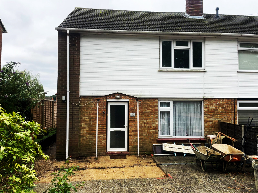 For this Frimley home, we carried out a full transformation designed to maximise space and modern living. The project included building a large rear flat roof extension to create an open-plan living area, complete with bifold doors and two Velux flat roof windows that flood the space with natural light. At the front of the property, we constructed a new porch with a convenient downstairs toilet.