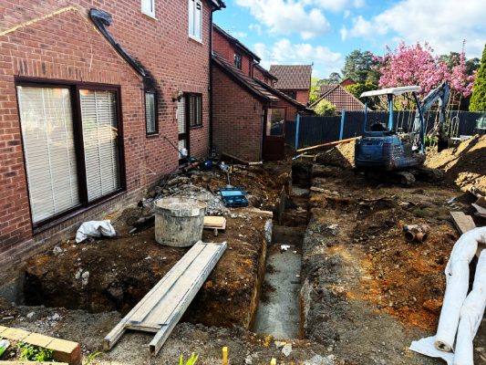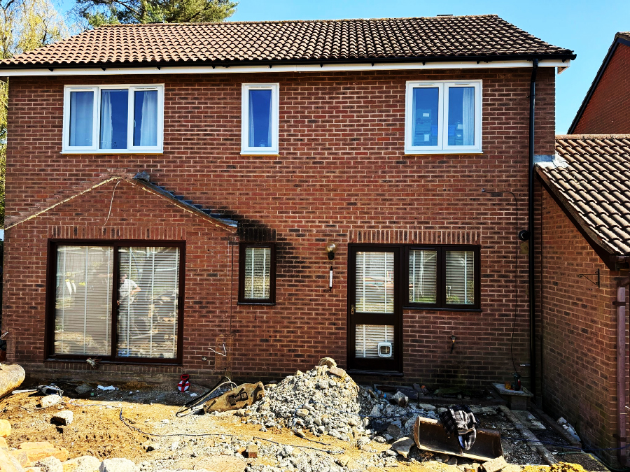 For this Heatherside property, we built a stunning rear kitchen and dining room extension designed to maximise natural light and create a seamless indoor-outdoor flow. The space features an impressive 6-metre set of bi-folding doors opening onto the garden, along with four 1-metre roof lanterns that flood the interior with daylight. The result is a bright, modern open-plan living area that combines style, practicality, and a real sense of space.